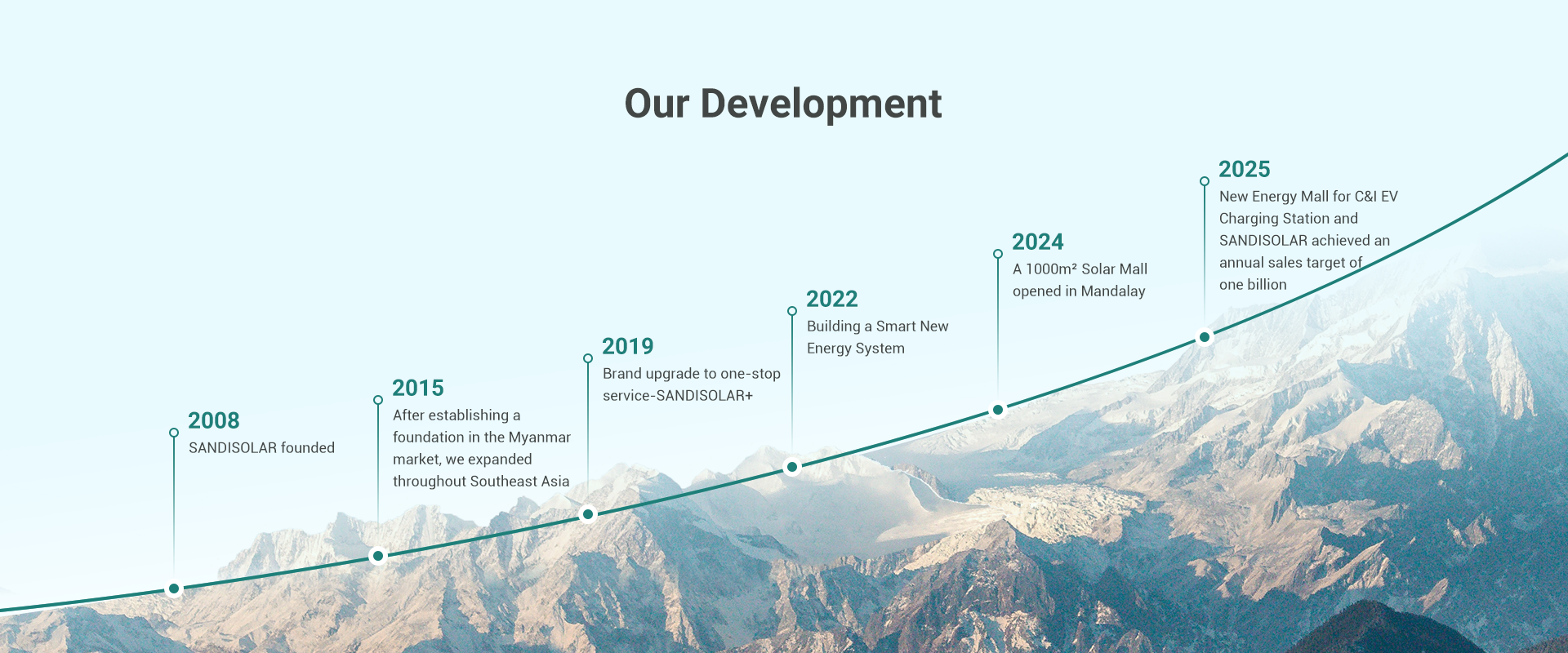 SANDISOLAR wurde gegründet in 2008 und ist ein Hightech-Unternehmen in der Forschung, Entwicklung, Produktion, und Verkauf von Produkten wie PV-Modulen, Wechselrichter, Batterien, Energie, Speichersysteme, EV-Laden, und Anwendungen für neue Energien. Nutzung branchenführender Produkte und eines intelligenten Energiemanagementsystems, unser Unternehmen hat die neuen Energiemärkte in Myanmar und Thailand erschlossen, und bietet unzählige Haushalte und Industrie & Gewerbeunternehmen – eine integrierte Energielösung, die das gesamte Spektrum abdeckt "Solarspeicher-Laden" Spectrum – wirklich saubere Energie in Tausende von Fabriken bringen.